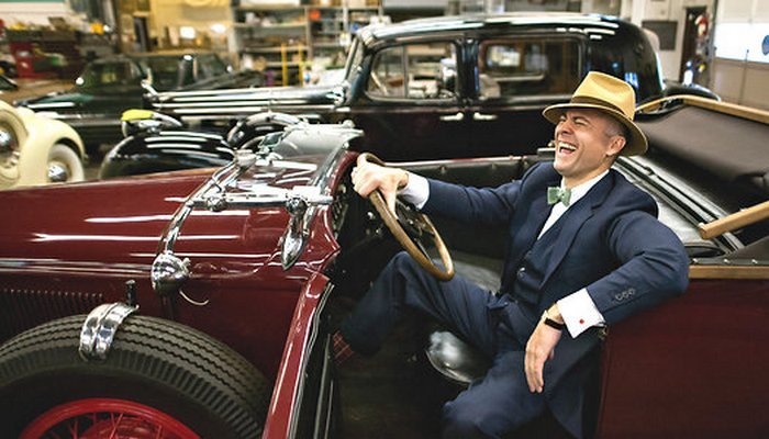 Майкл Аренелла, 37-летний джазовый музыкант и руководитель джаз-оркестра из Бруклина, выглядит так, как будто на машине времени прибыл из 1920-х годов. Каждое лето он проводит ежегодную джазовую вечеринку Jazz Age Lawn Party , где сам поет и играет на корнете-а-пистон. Майкл не только изучает музыку 20-х и начала 30-х годов, но также носит соответствующую одежду того времени - шляпы, запонки и галстуки.